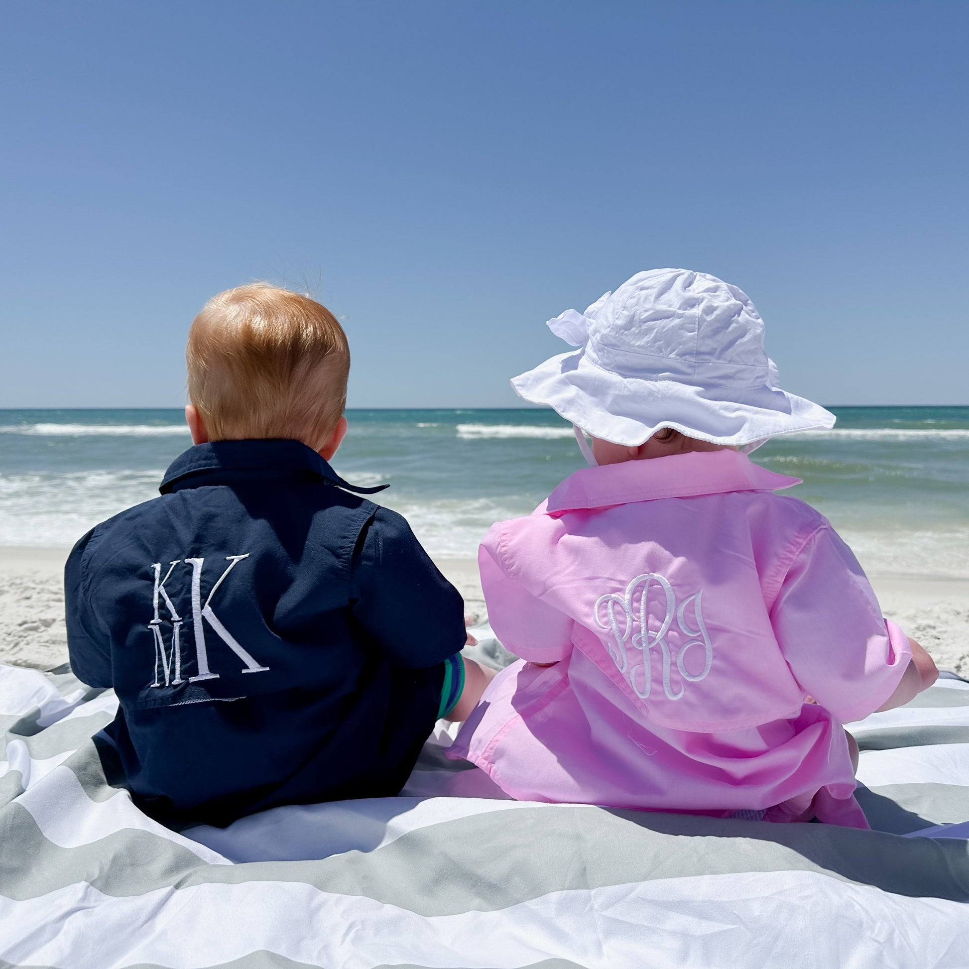 Material: 65% polyester 35% rayon Length measurements laying flat below -- from highest point shoulder to hem. XXS 12/18M 14.75 inches XS 2T/3T 16.5 inches Small 4T/5T 18.25 inches Medium 6Y/7Y 20 inches Large 8Y/10Y 22 inches Embroidery included in price - remember to add your font/monogram, thread colors, and/or designs to cart!